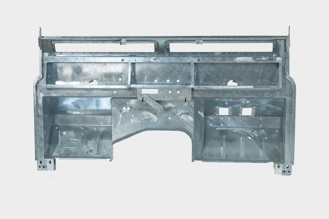 The metal we use is mostly 1mm thick just like the original bulkheads were made from the Rover Co. and Land-Rover, but weak and thin points have been eliminated, so in places the metal is a little thicker to ensure the bulkhead is stronger and withstands corrosion.